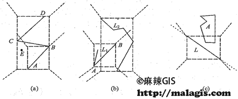 (b) 反映线与线之间的全域空间方向关系,直线段AB与线L2的每条直线段和线的任意子集之间都有局域空间方向关系。