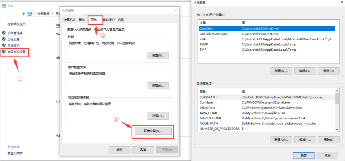 1,配置环境变量 我的电脑->右键->属性->高级系统设置->高级->环境变量