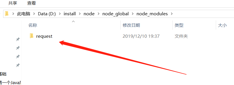 可以看到我们的D:\install\node\node_global目录下已成功的安装了request类库