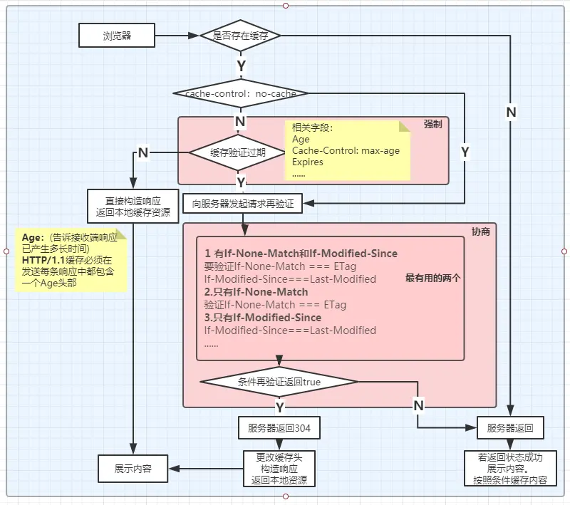 - 缓存过期,发送本地缓存的相关的验证字段(If-None-Match 、If-Modified-Since)到原始服务器进行验证。