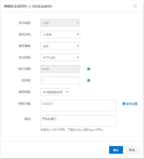 - 实列列表 => 更多 => 网络与安全组 => 安全组配置 => 添加安全组