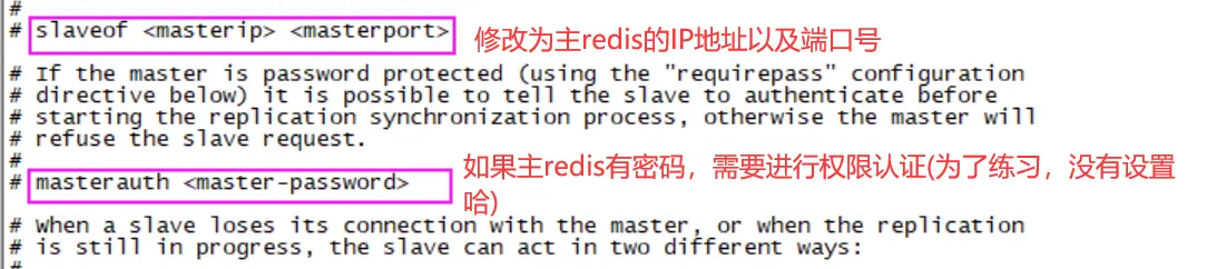 如果主节点设置了权限(requirepass密码),那么从节点(masterauth参数)就需要进行权限验证;如果验证失败,复制终止。