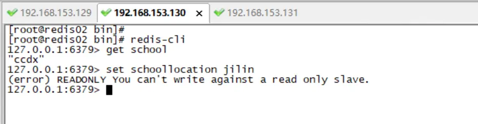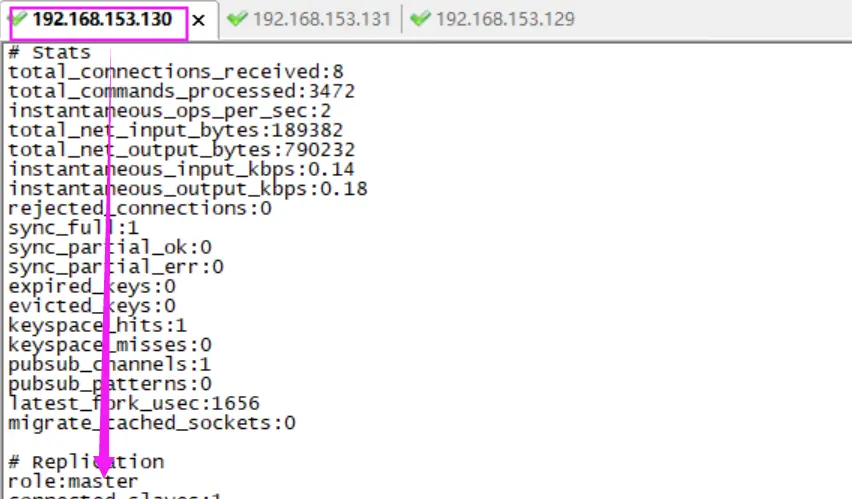 首先我确定了192.168.153.129是我的主redis节点,192.168.153.130和192.168.153.131分别是从redis节点