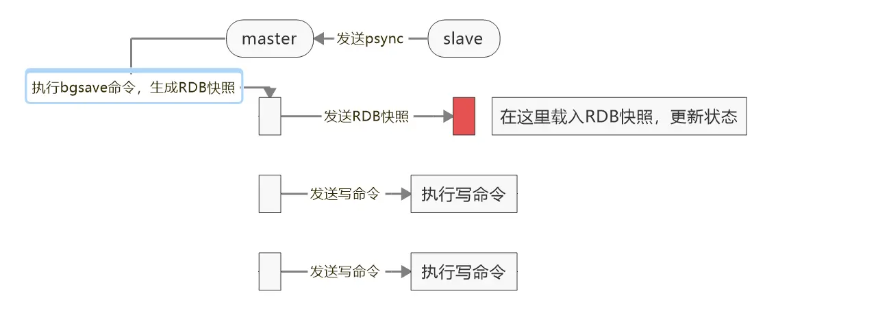 - 如果回复 +FULLRESYNC ,那么从节点将触发全量同步流程。