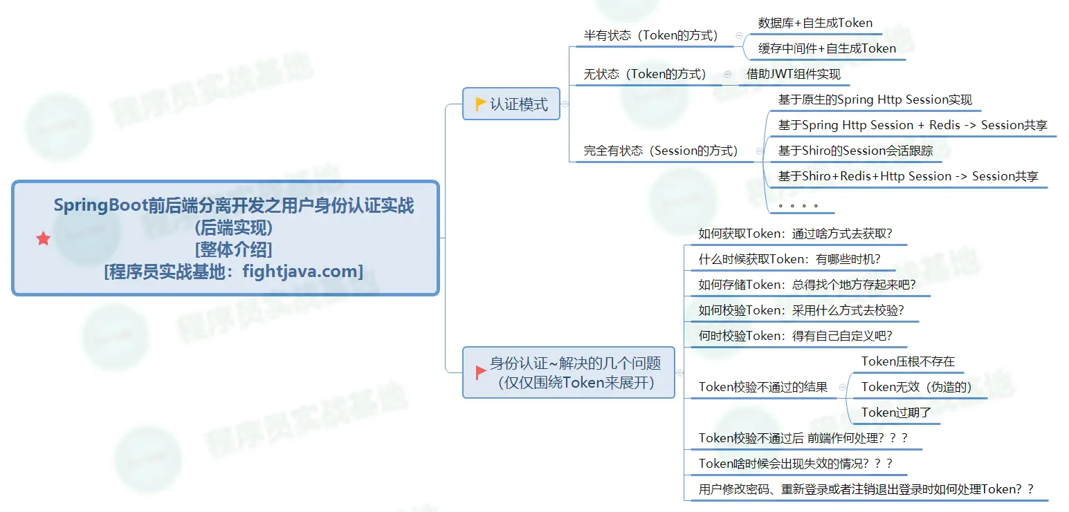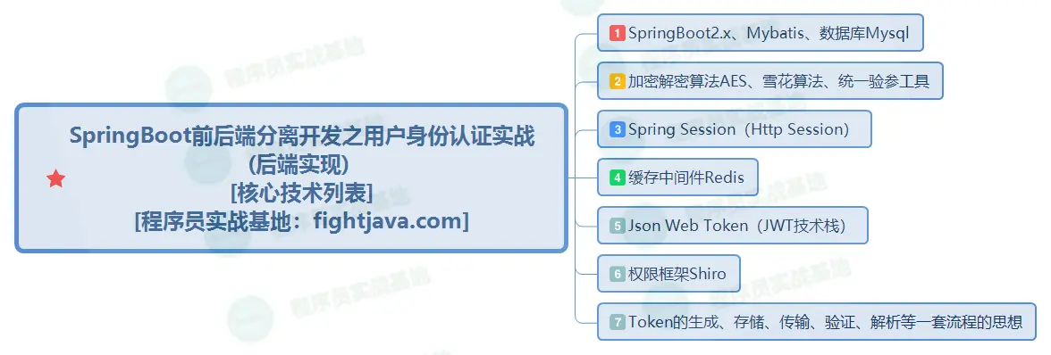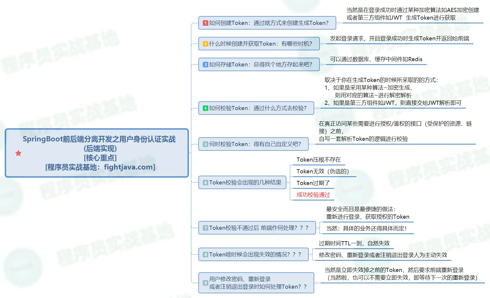 除此之外,本课程所介绍的核心重点在于“仅仅围绕基于Token的认证模式”进行展开讲解与实战,如下图所示为Debug亲自罗列、归纳出来的几大核心要点(面试官就经常喜欢这样面):