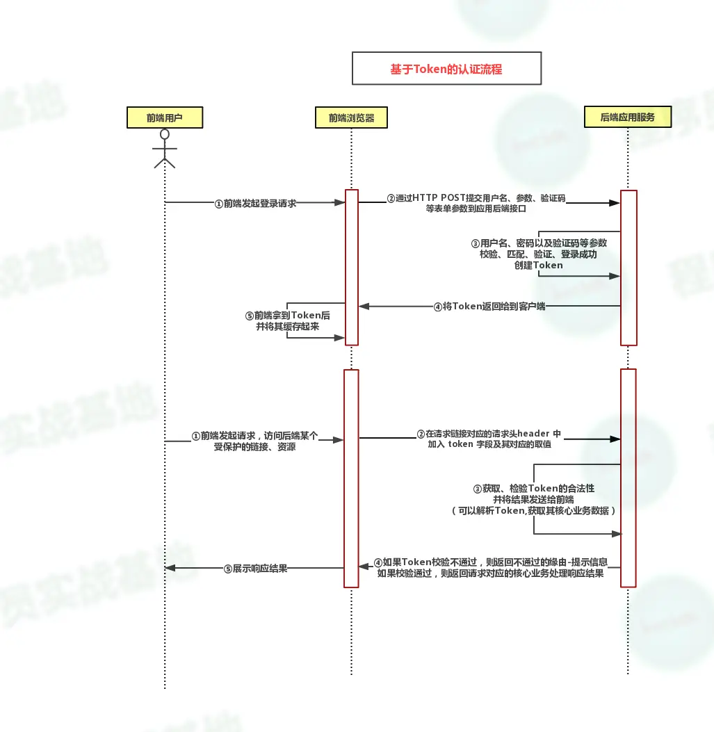如下图所示为 基于Token认证模式 总体上的时序图: