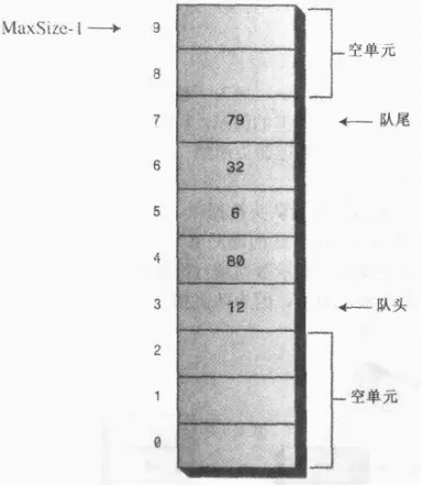①、与栈不同的是,队列中的数据不总是从数组的0下标开始的,移除一些队头front的数据后,队头指针会指向一个较高的下标位置,如下图: