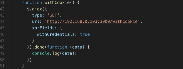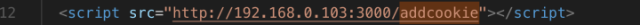 - 下图的script.src地址是在向另一个域种cookie,应该设置为本机的IP地址,如果设置为127.0.0.1,无法看到跨域带cookie的效果