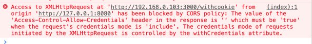 错误提示:withCredentials=true的时候response的Access-Control-Allow-Credentials必须为true