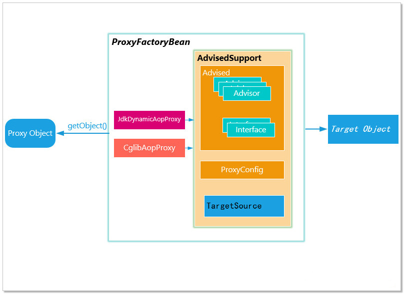 根据这些信息,ProxyFactoryBean就能给我们提供我们想要的Proxy对象了!那么,ProxyFactoryBean帮我们做了什么?