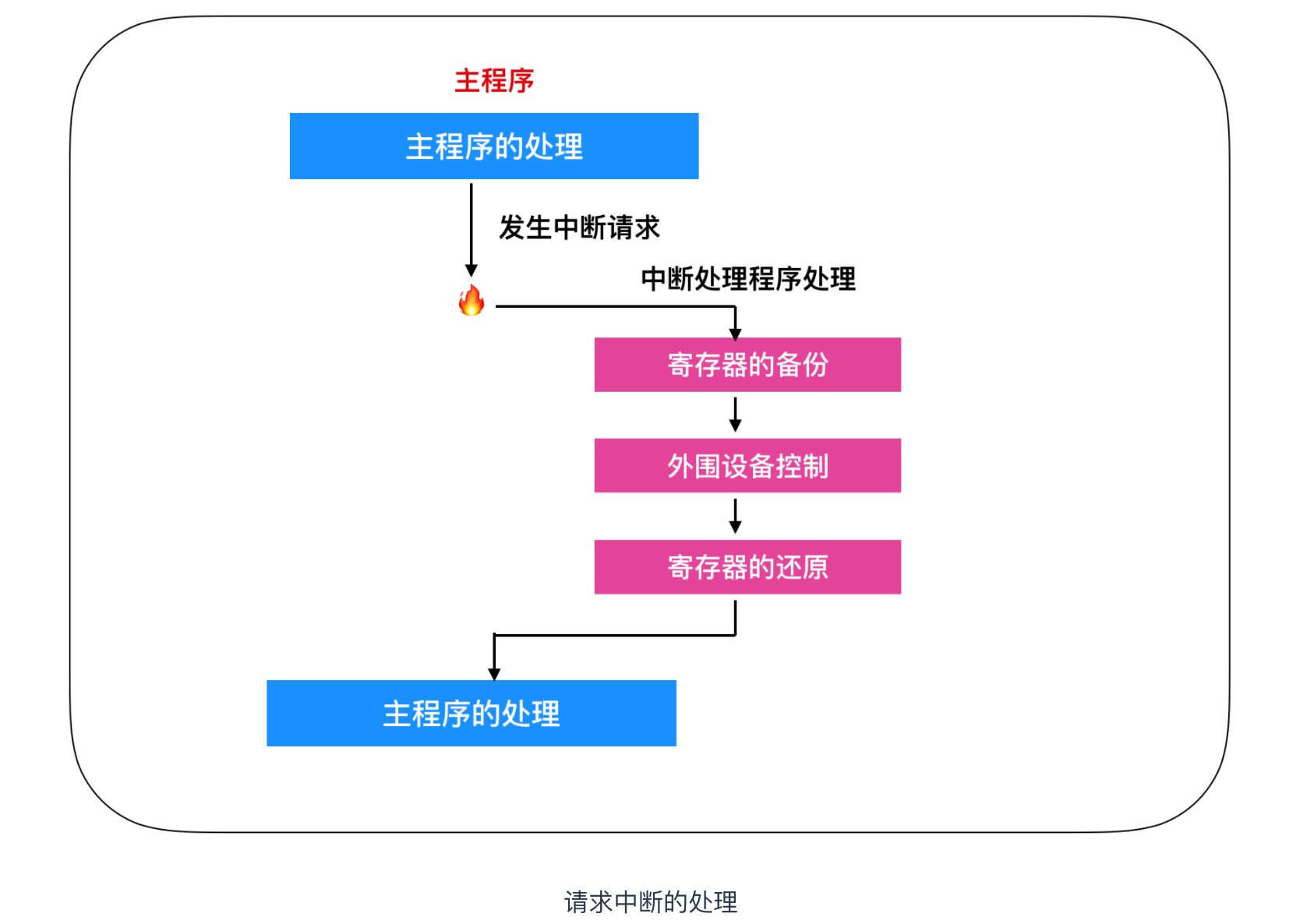 假如 CPU 寄存器数值还没有还原的话,就会影响到主程序的运行,甚至还有可能会使程序意外停止或发生运行时异常。这是因为主程序在运行过程中,会用到 CPU 寄存器进行处理,这时候如果突然插入其他程序的运行结果,此时 CPU 必然会受到影响。所以,在处理完中断请求后,各个寄存器的值必须要还原。只要寄存器的值保持不变,主程序就可以像没有发生过任何事情一样继续处理。