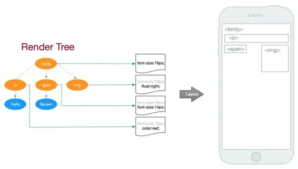 通过 DOM Tree 和 CSS Rule Tree 来构建 Rendering Tree。 Rendering Tree的每个节点都有了样式信息。