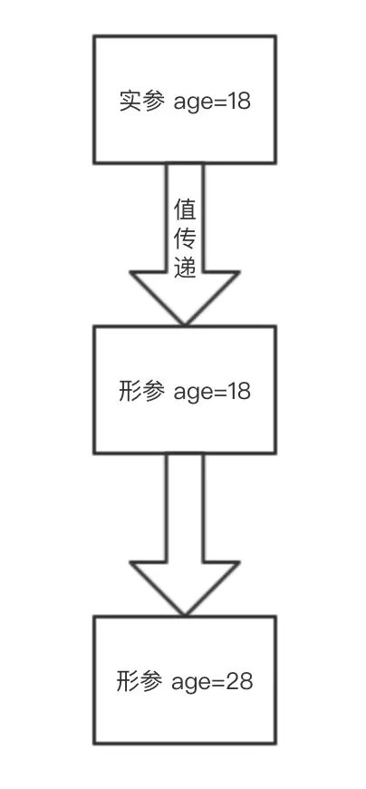 上面这段代码中,sop() 方法的实参 age 为 18,尽管 sop() 方法的形参被修改为 28,但并不会影响实参的值。这一点可以从输出结果中加以证明。