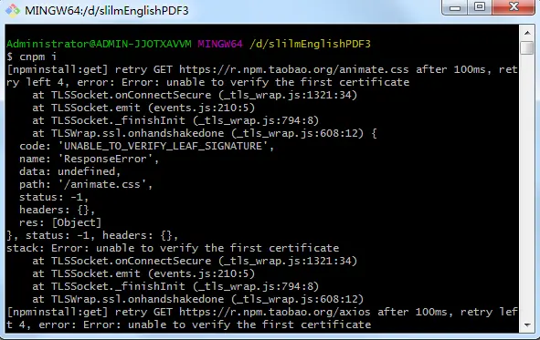在使用npm install或cnpm install的时候,出现以下报错 Error: unable to verify the first certificate