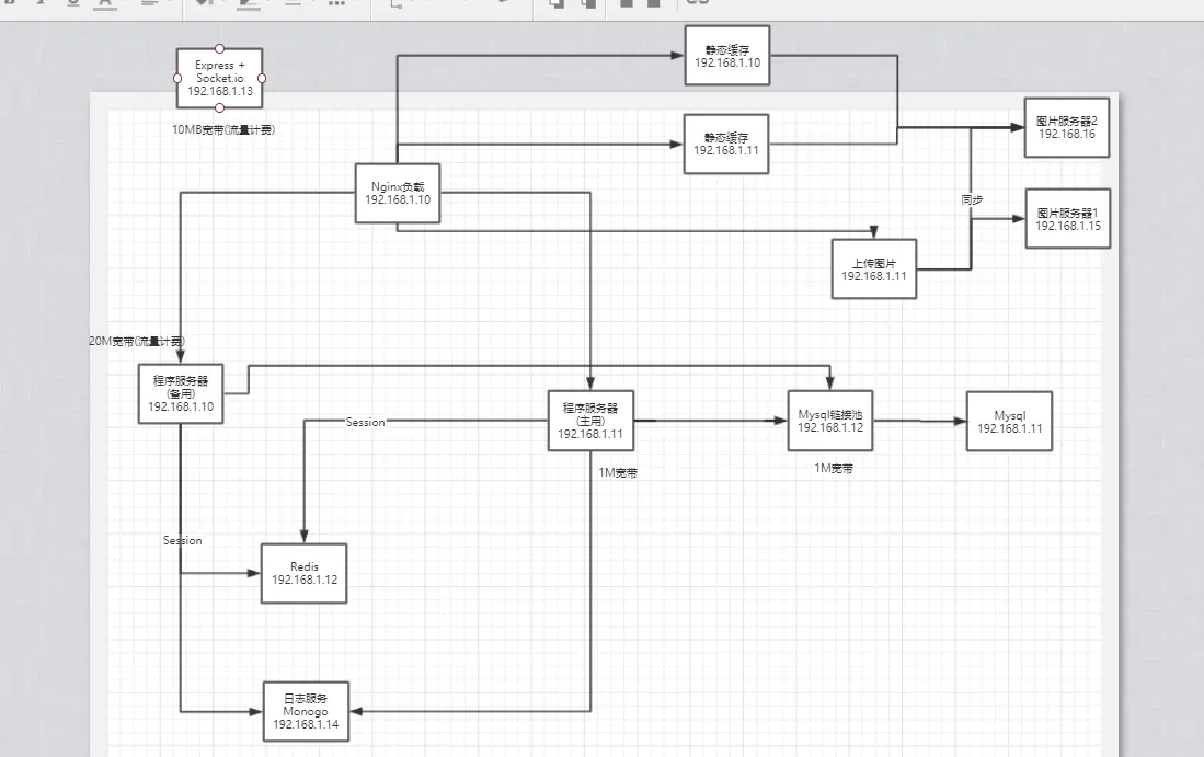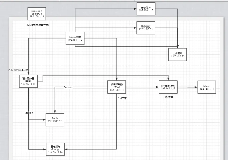 看到这里你们会发现一个问题就是,安流量计费。只有两台主机是有宽带,其余都是内网通信。 如果文字传输的话,流量并不算大,可以这么处理。可是图片过多的时候,如果有资本的企业选择肯定是七牛云之类的服务,因为这里服务包含了(分布式、CDN、还有负载等一系列的功能),可是这类服务如果一不小心的话,超出流量那就只能喊爸爸了。