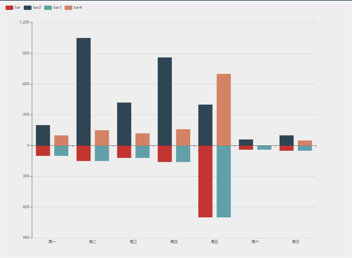 data: ['bar', 'bar2', 'bar3', 'bar4'], // 图例 记得和series中的name要和这里保持一致