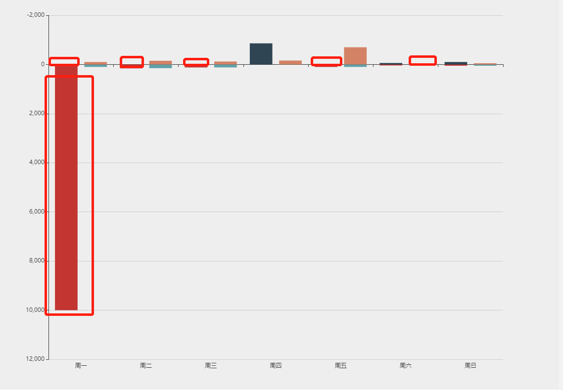 当正值和负值相差过大的时候(这种情况比较小,但是数据不是由前端控制,当实际上出现这种数据的时候,并不能避免),小的值展示会很不清晰,如图