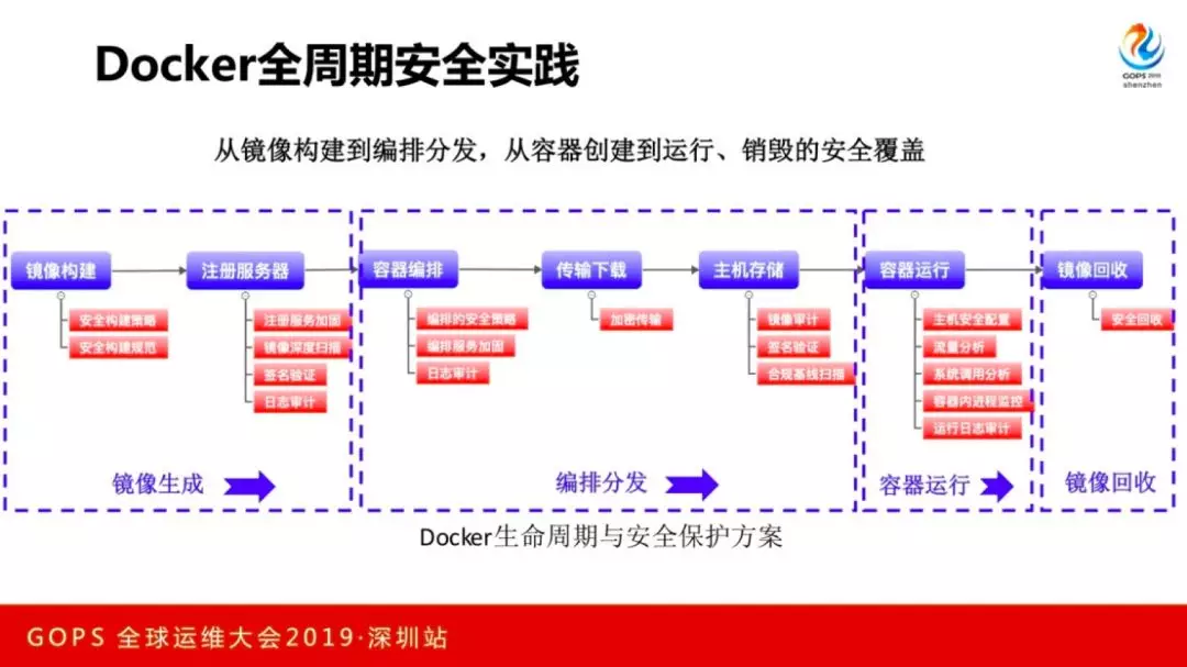 整个容器的生命周期,包括了从镜像构建到编排分发,从容器创建到运行、销毁这一系列阶段,因此我们需要从容器生命周期全阶段进行安全加固和保护。