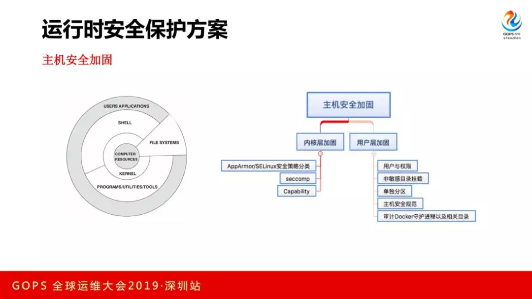 主机与容器守护安全问题。主机上的安全配置是否影响到容器的运行,主机的安全漏洞是否影响到容器运行,容器内的进程是否可以利用主机上的安全漏洞。