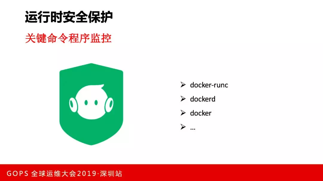 除了做进程监控外,进程的审计调用也非常关键,包括网络是否有外联网络联到恶意的地址或域名,Exec函数族审计,还有域名解析审计。Docker的关键命令程序进行监控,需要监控Docker目录下像Docker-runc、Dockerd、Docker的程序有没有被篡改,需要进行监控和预警保护。