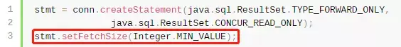 一种是流式结果集:只要把Statement的FetchSize设置成这个值,JDBC就会使用流式ResultSet处理返回结果,让用户能够一边接收数据一边消费数据,而不需要全部接收完再消费。