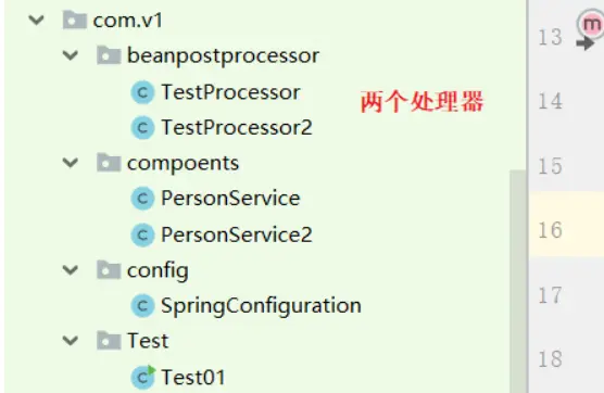 前面我们准备了两个处理器 TestProcessor,TestProcessor2都实现了 BeanPostProcessor 和 PriorityOrdered