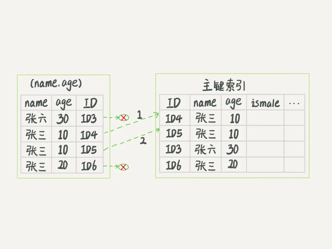 再到 ID 索引树查到 ID=300 对应的 R3;