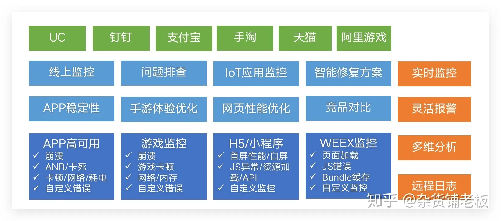 前面介绍的是APP监控的平台建设,在当前技术快速发展的情况下,新技术层出不穷,以nodejs、flutter、weex为首的大前端,以小程序为代表的新流量入口,都存在着新技术的流量红利。