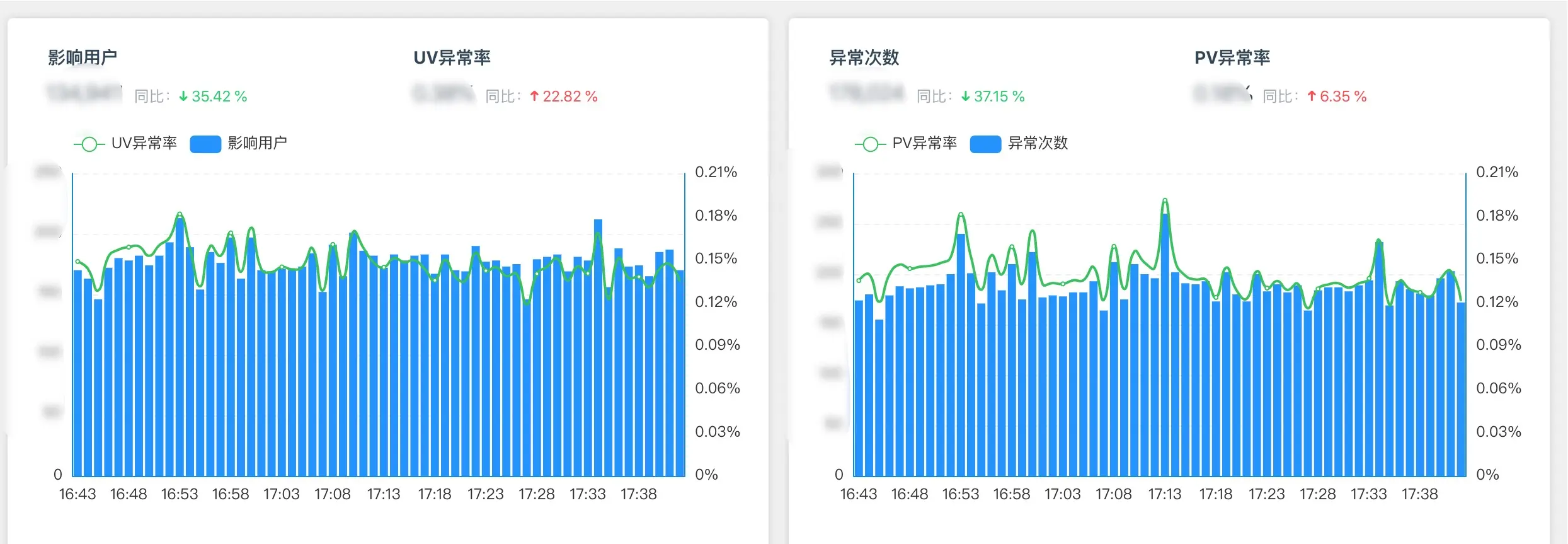 通过岳鹰的实时大盘,我们可以第一时间发现线上问题,这里待会后面预警也会讲。 岳鹰平台提供分钟、5分钟、小时、天级别的趋势数据;图上的实时大盘是分钟级别的统计。