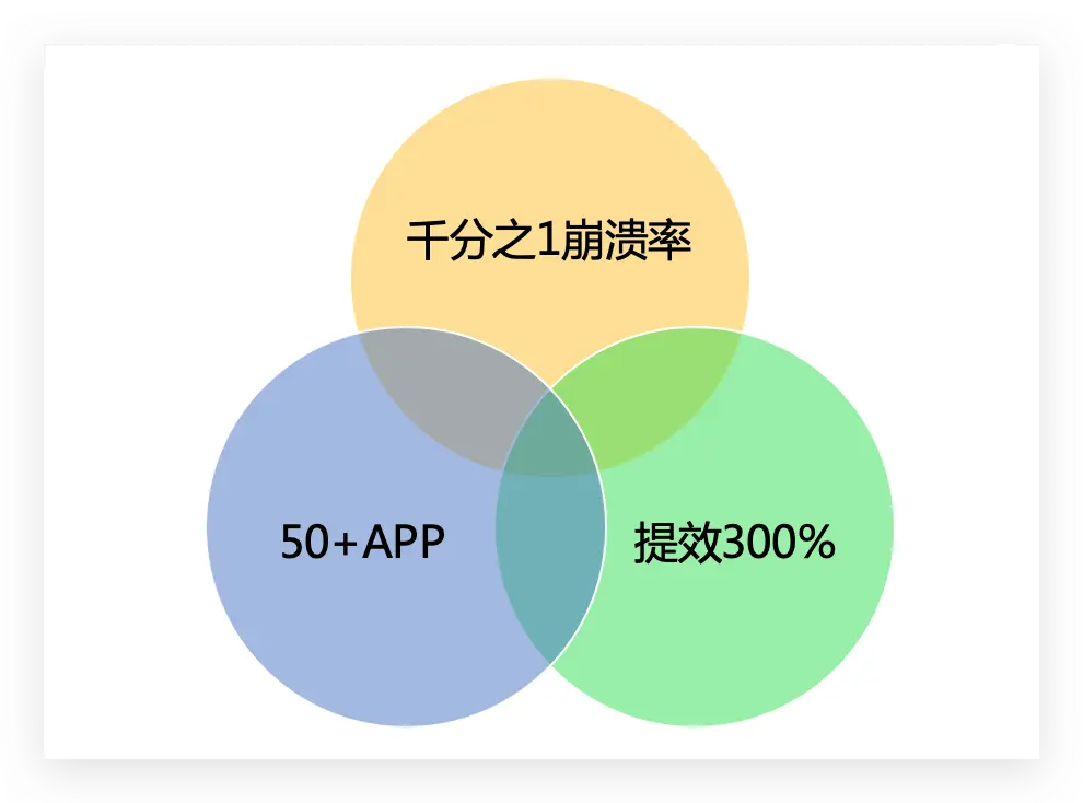 第一点,从平台指标和用户体验看,我们解决了APP稳定性的一些难题,把UC以及体系内的APP长期保持 「千分之一」 以下的崩溃率,这不是一个标准,但是UC APP需要达到的一个效果(指标是需要长期治理的)。