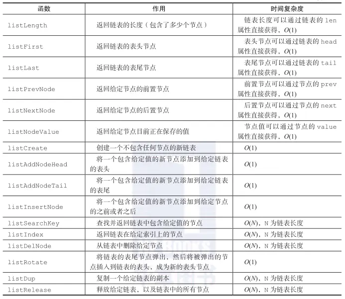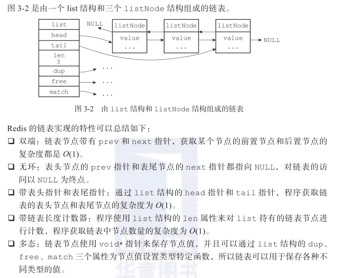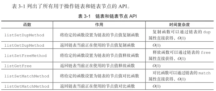 list结构为链表提供了表头指针head,表尾指针tail,以及链表长度计数器len。dup、free和match则用于实现多态链表所需的类型特定函数: