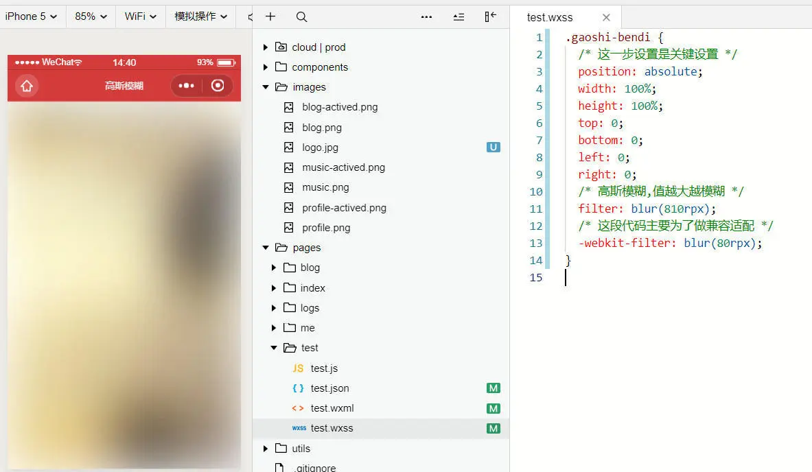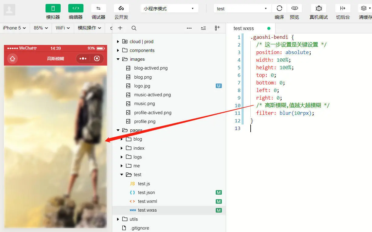 到这里我们小程序就轻松的实现高斯模糊效果了。是不是很简单。 今天就到这里了,后面我还会分享更多小程序相关的知识出来。请持续关注。