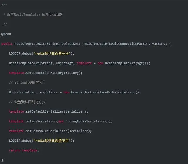 配置RedisTemplate的主要目的是配置序列化方式以解决乱码问题,同时合理配置序列化方式还能降低一点性能开销。
