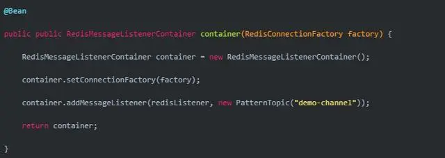 这几行代码大概意思就是新建一个Redis消息监听器容器,然后将监听器和管道名想绑定,最后返回这个容器。