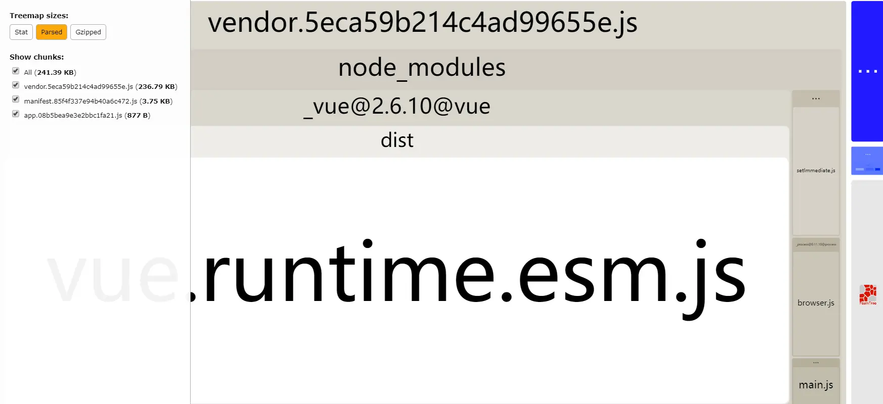 通过 webpack-bundle-analyzer 可以看到打包后js的依赖关系。