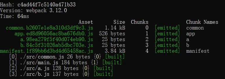 我们再增加两个js ./src/a.js 、 ./src/b.js 。