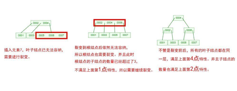 下面我们以一个[0,1,2,3,4,5,6,7]的数组插入一棵 3 阶的 B-Tree 为例,将所有的条件都串起来,你就明白了!