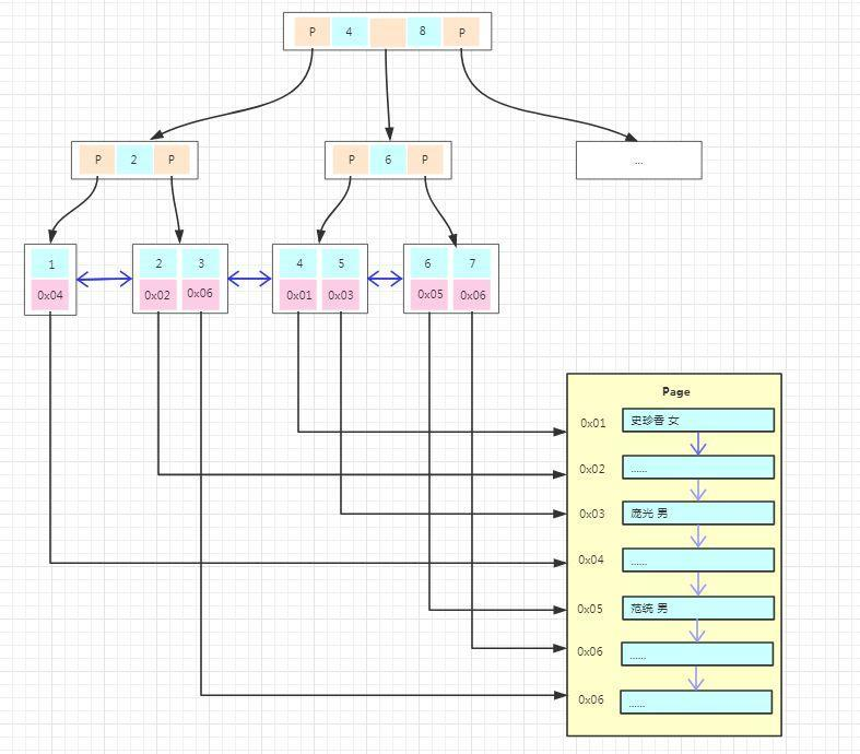 但是为了数据访问顺序性,在每个记录中都有一个指向下一条记录的指针,以此构成了一条单向有序链表,不过在这里为了方便演示我是按顺序排列的!