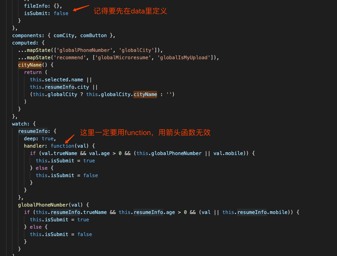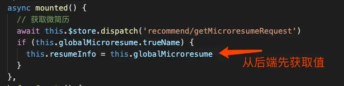 由于在store里把后端返回的json赋值为后端返回的值后,相当于globalMicroresume和resumeInfo都是空。这样的话,computed就没有办法检测到resumeInfo的变化。