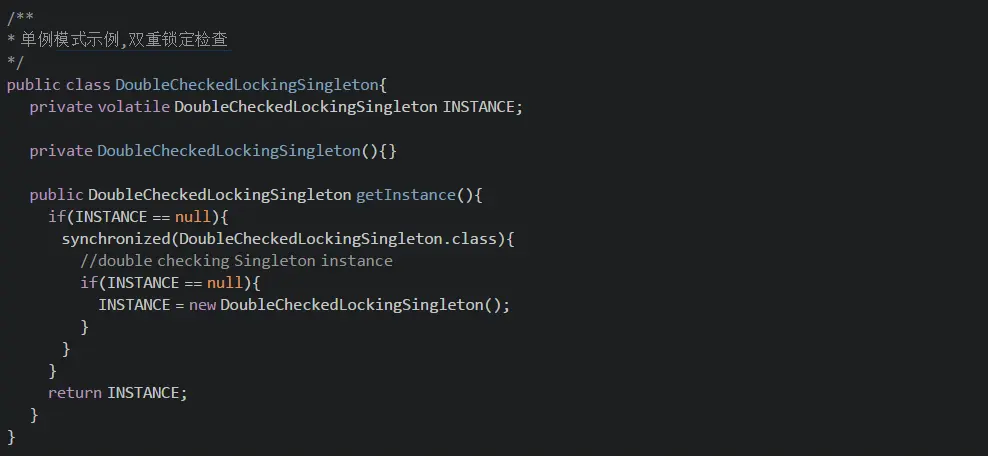你可以调用DoubleCheckedLockingSingleton.getInstance() 来获取此单例类的访问权限。