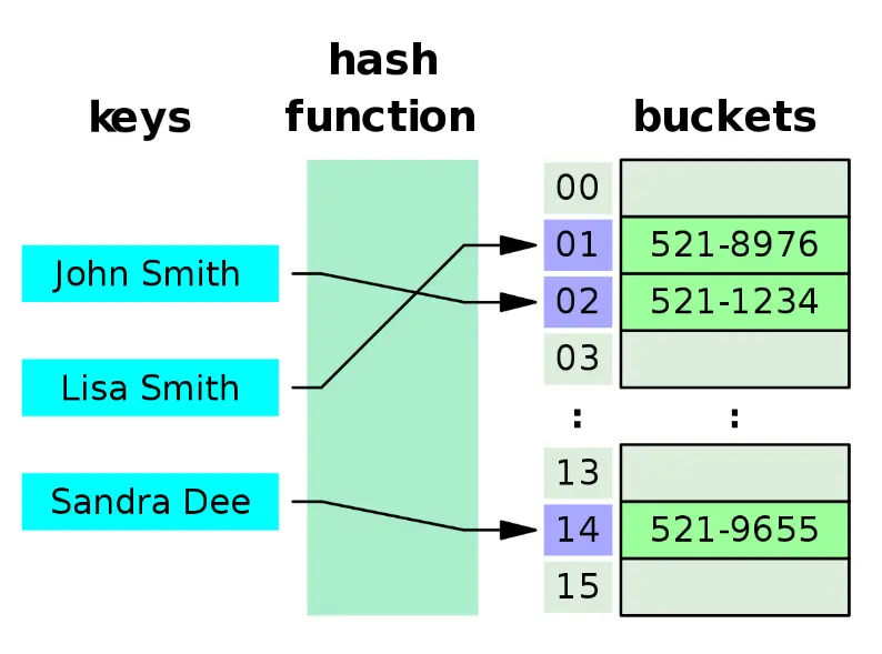 似乎很难懂这三者(Keys,hash function,buckets)之间的关系,那么就举个例子🌰吧:👇👇👇