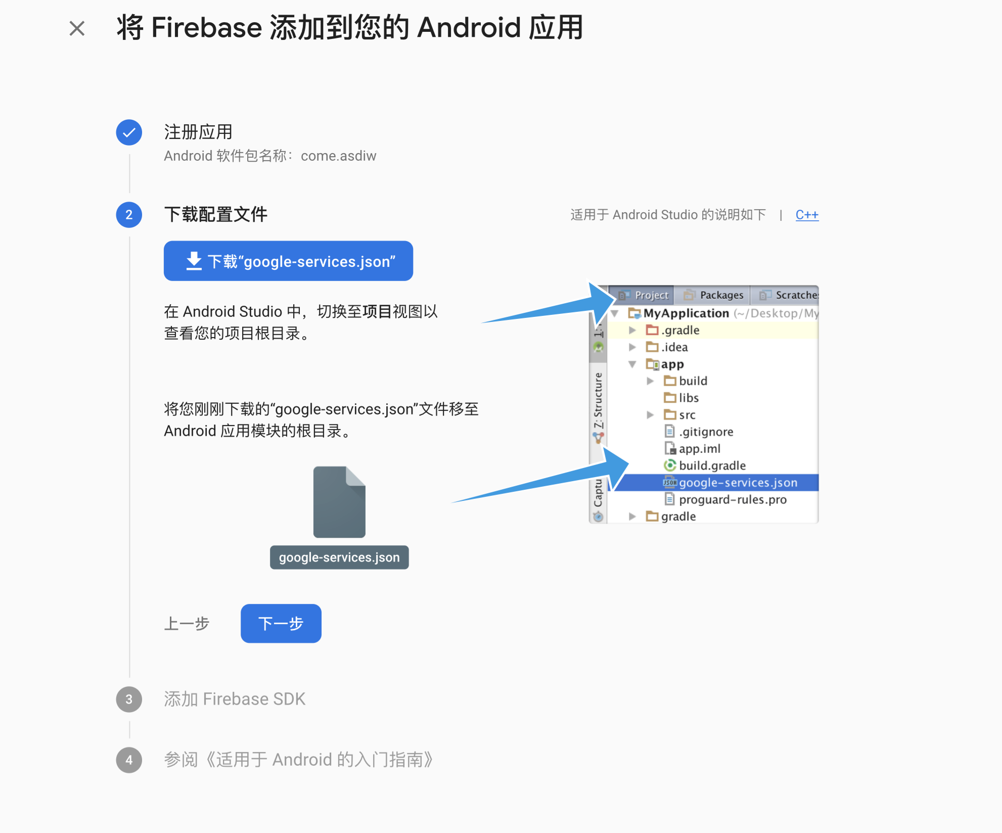 在你创建项目的时候,谷歌会给你一个json你需要放在项目中,(上面有图和真相)