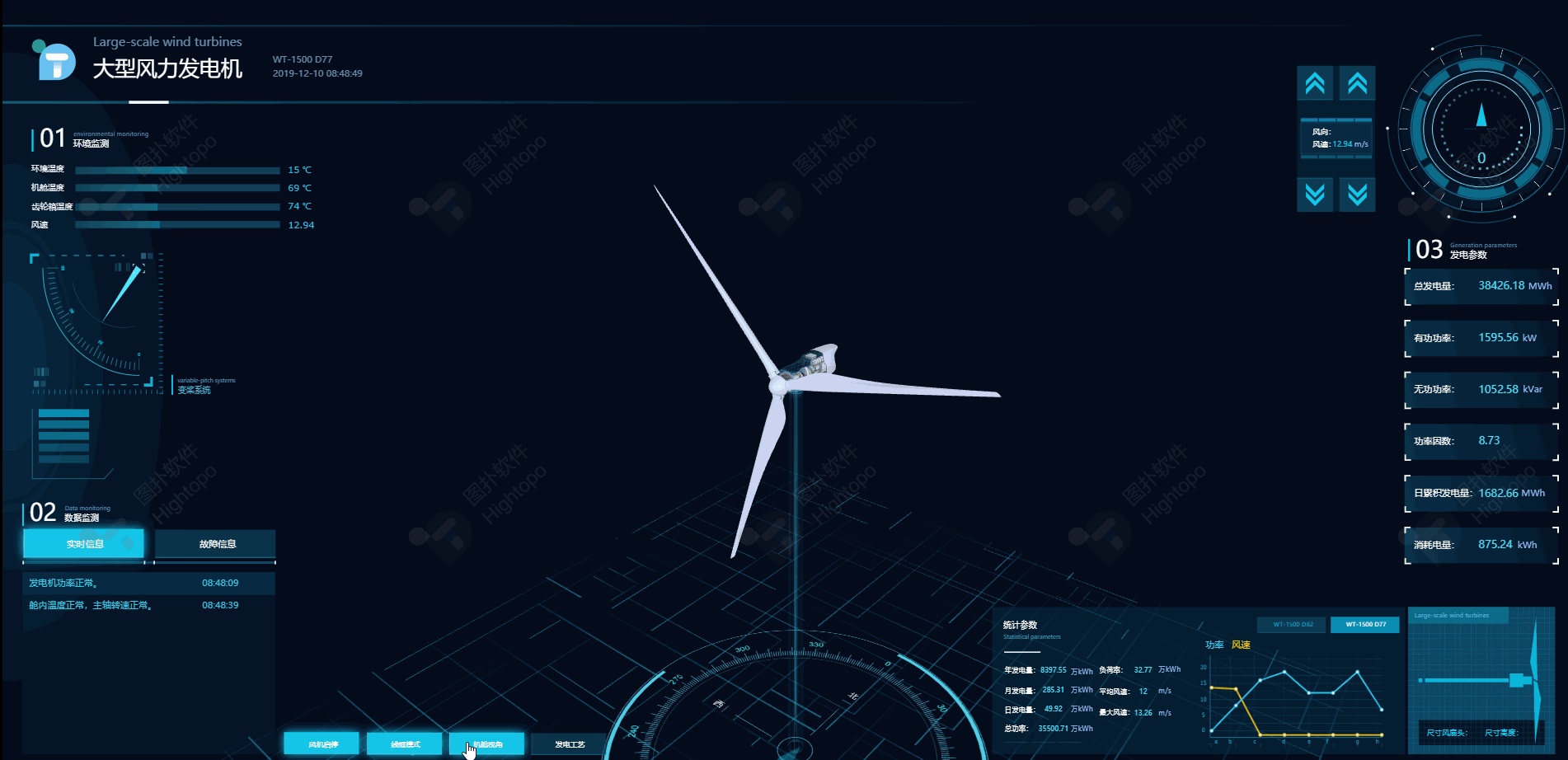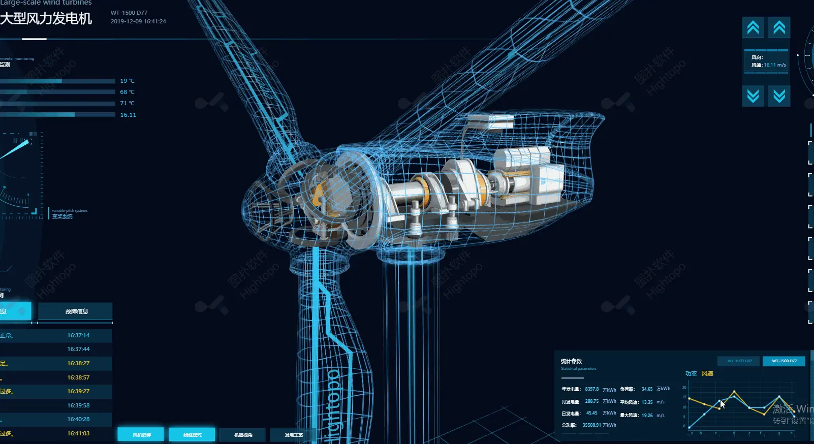 环境温度、机舱温度、齿轮箱温度、风速的图形百分比会随着时间发生改变。