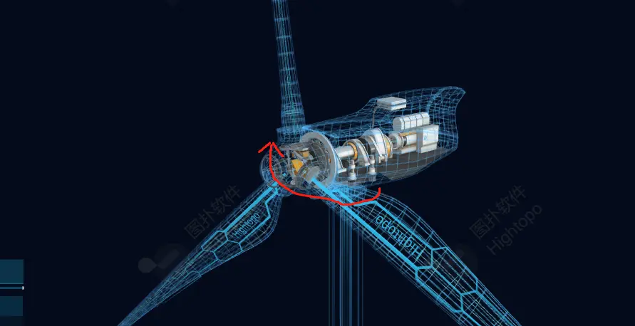 偏航系统:风机转动的过程中,随着风的位置的不同,通过偏航系统改变方向。