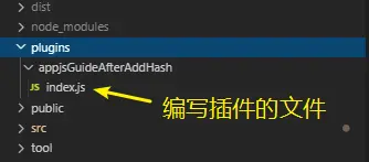 2. 自己编写plugin,在项目src文件同级创建plugins文件夹,定义一个存放解决该需求的插件文件appjsGuideAfterAddHash,创建index.js。