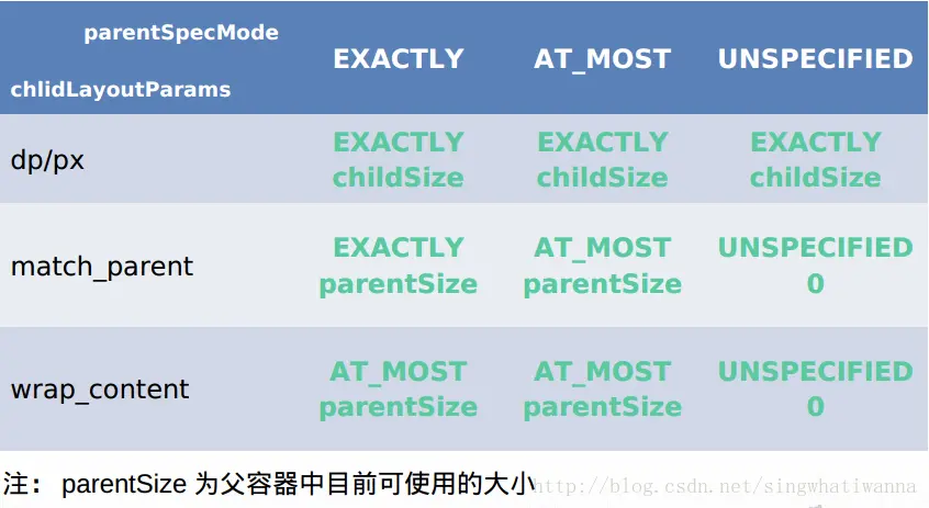 - 对于不同的父容器和view本身不同的LayoutParams,view就可以有多种MeasureSpec。