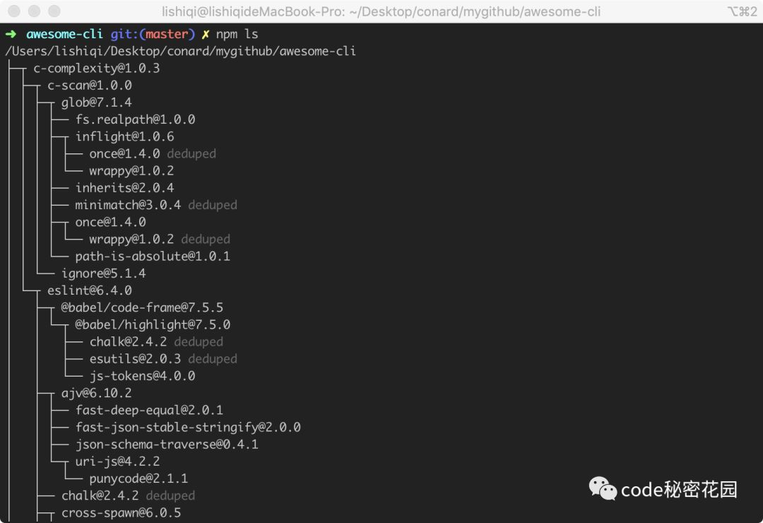 执行 npm ls 可查看当前仓库依赖树上所有包的版本信息。