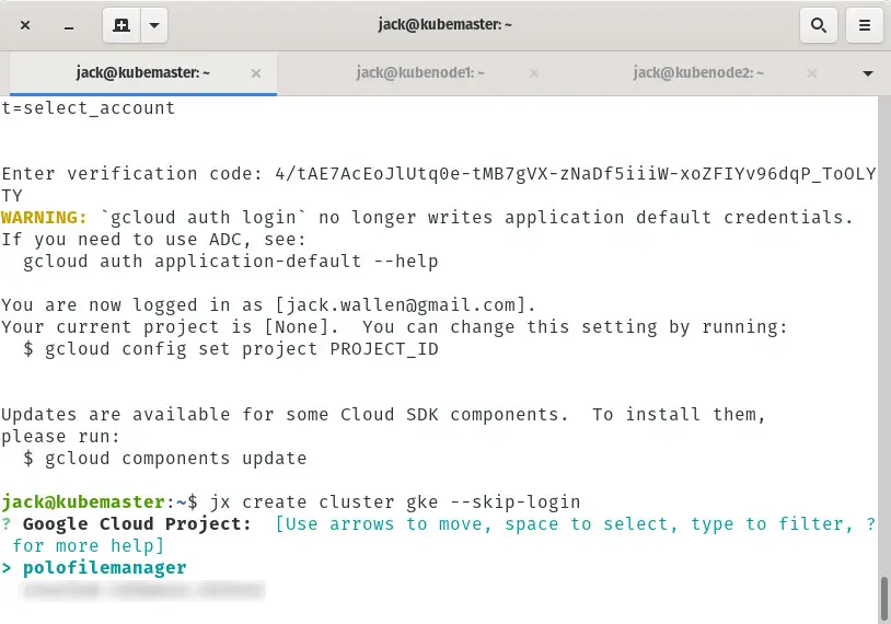 jx create cluster gke --skip-login