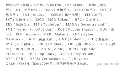 下面这张图是升级后鲸钱包支持的新增币种。