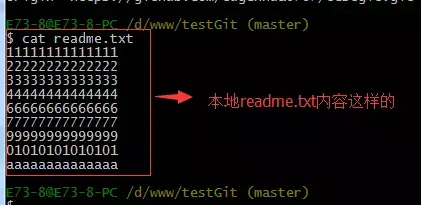 首先我们先来查看下readme.txt内容,接着添加内容77777777,如下: